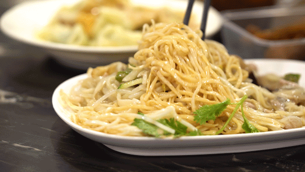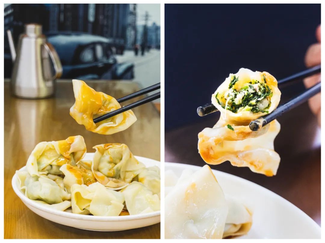 饱满大颗的碱水皮冷馄饨,内里是青菜肉馅的。浇上调好的花生酱,一口一个,扎实得很。04 东泰祥生煎馆