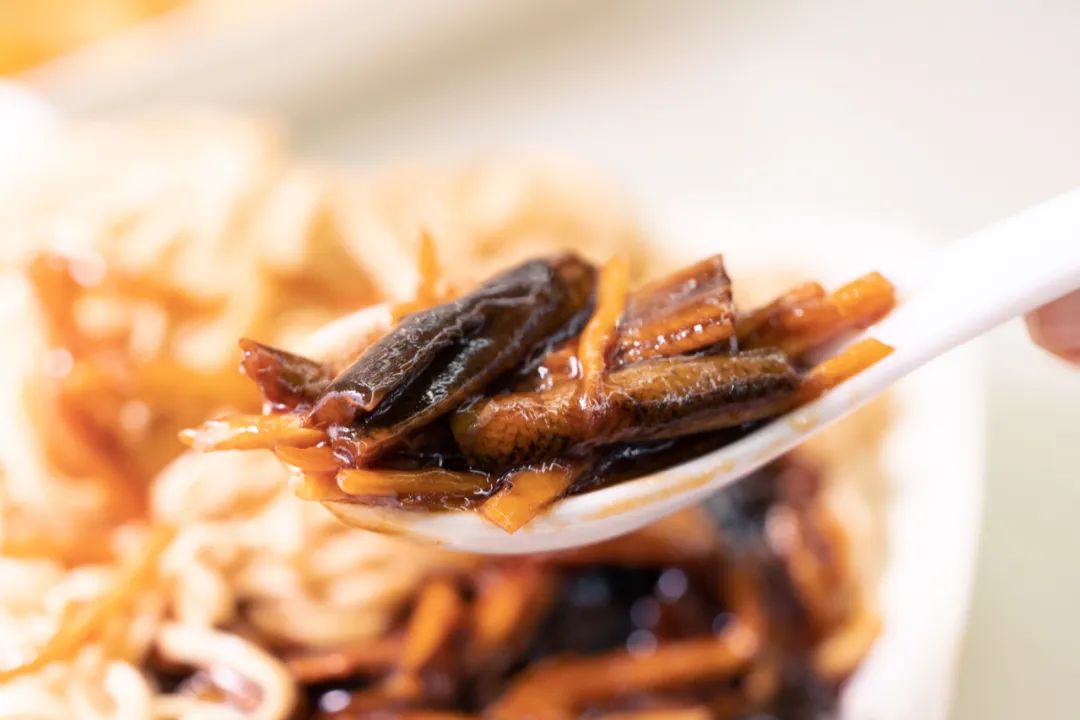 三丝浇头勾芡过重,茭白像是泡在油里,一点都不清爽,肉丝也软塌塌的,毫无食欲可言。或许是放凉的缘故,爆鱼不够酥脆,吃到后面还隐约吃出了一股子草鱼的腥气。