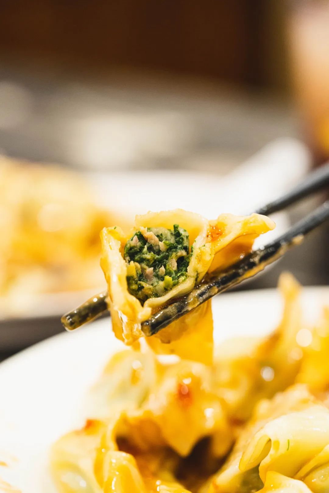 菜肉冷馄饨无功无过,馄饨皮偏厚,荠菜和猪肉的比例混合得还算不错。点睛之笔在于红彤彤的辣油,提香的同时,层次感十足。