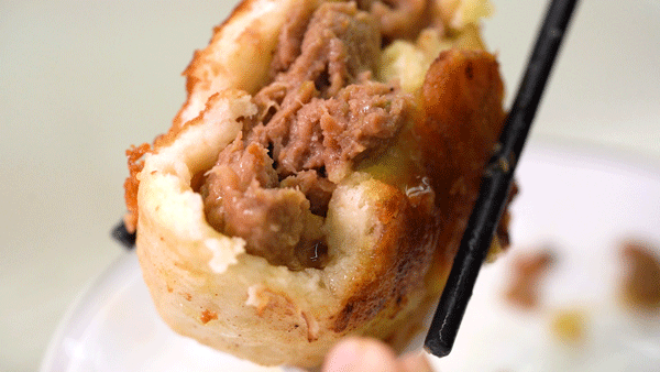 称霸上海滩的牛肉煎包必尝,两面金黄,一只足有一个拳头那么大。