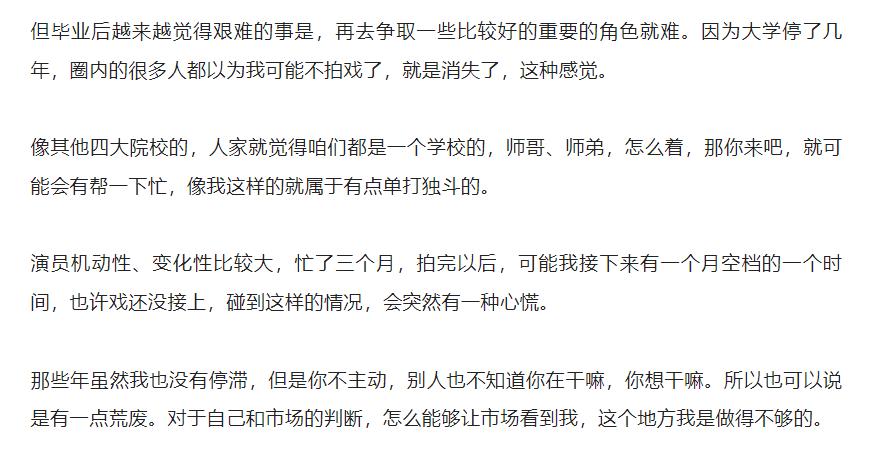 互联网让热点、红人更迭的速度大大提升。曹骏当年准备不足,艺考受挫,因此决定在大学期间闷头修炼,到大四才重新开始拍戏。可此时他以前的光环、资源已经流失贬值,互联网、新资本与流量明星组成的全新体系他也融不进去。