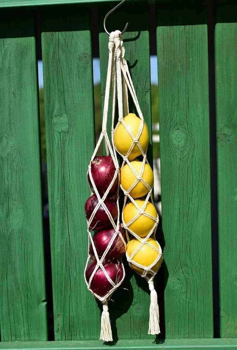 如果冰箱位置不够,也可以放在阴凉干燥、昼夜温差不大的地方保存[9,13],比如用挂藏法,将洋葱装进镂空的空挂袋、收纳袋等悬挂储存。