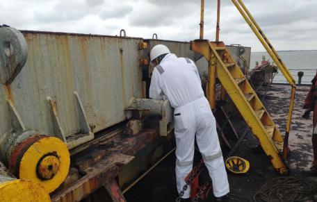 (3)作业人员必须穿戴个人防护设施,包括防滑鞋、工作服、安全帽、手套,舷边作业时要穿戴救生衣。