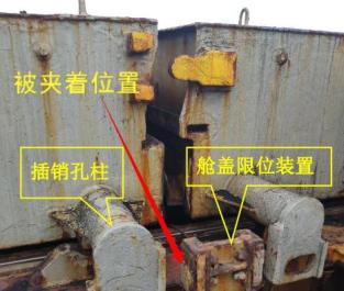 约1600时,一名水手听到有人呼喊求救,立即前往查看,发现遇难船员在NO.5货舱口后被夹在NO.5货舱后舱口围舱盖限位装置与左舱盖板插销孔柱之间,当时周围旁边没有其他人,其试图拖拽遇难船员没有成功,接着想通过操纵控制杆打开舱盖,发现开关舱控制台失电。