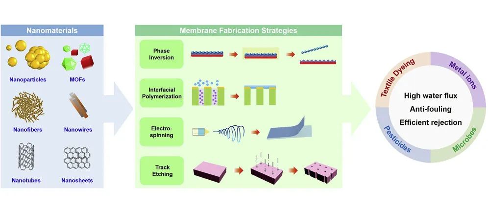 膜技术在去除废水中的污染物方面引起了极大的关注,这主要是由于其较低的运行成本、小型设备尺寸、低能耗以及对于较低浓度的污染物的高效去除能力。高雄医学大学Yen-Ling Chen教授和国立台湾大学Huan-Tsung Chang教授合作撰文,梳理了该领域的相关文献,总结了用于废水处理的纳米改性膜材料的相关研究进展。文章指出,在聚合物基质中引入纳米材料会影响膜的表面粗糙度、疏水性、孔隙率和抗污染性等性能。该综述涵盖了功能化方法对制备纳米复合杂化薄膜的重要性及其对消除污染物的影响,系统讨论了膜内纳米材料对回收各种污染物(如金属离子、有机化合物、染料和微生物)的影响,提供了展示纳米功能化膜材料在废水再生方面应用潜力的成功案例,展望了开发纳米改性膜材料的未来前景。