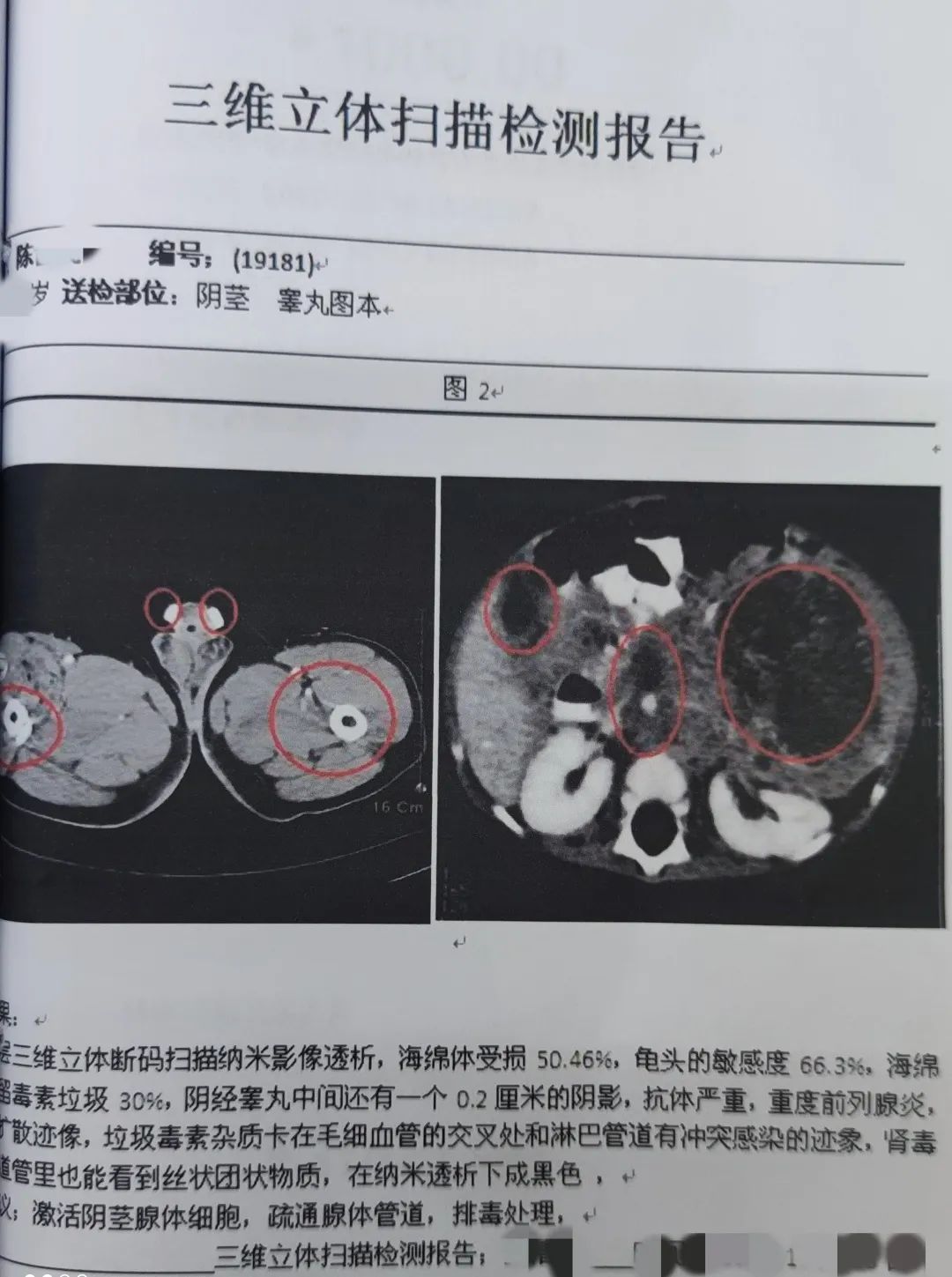 陈大爷提供的所谓鉴定报告图片李主任总结说:“我看了你的照片,判断你体内有毒素,堵塞了,所以之前吃的药无法吸收,需要先服用排毒的药。如果不排毒,之后严重了就要做手术,甚至危及生命。”这下可把陈大爷吓住了,赶紧又订了3000元的排毒药。