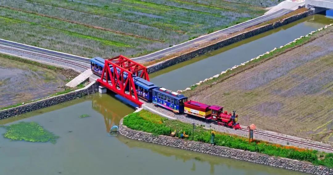 坐上“海稻号”小火车缓缓地穿行在稻海中