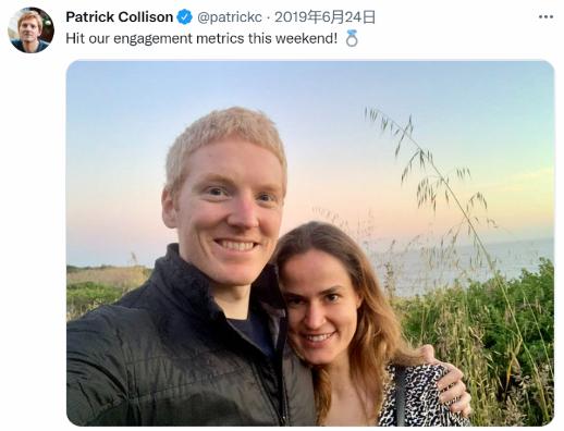 克里森公布了一张自己与科纳曼的合照,宣布订婚|Patrick Collison/twitter更灵活地给科学家打钱