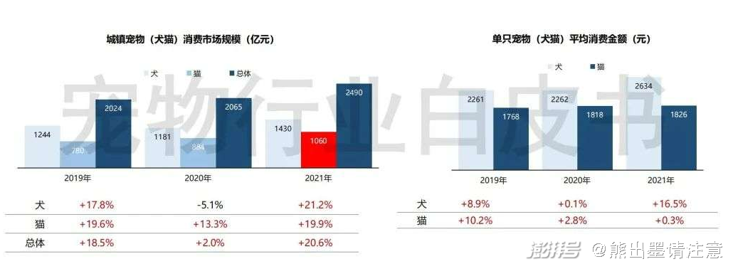 中国畜牧业协会宠物产业分会发布的《2021年中国宠物行业白皮书》显示,截至2021年,在中国城镇家庭中,宠物犬的数量为5429万只。对应的,犬市场消费规模为1430亿元,同比增长21.1%。