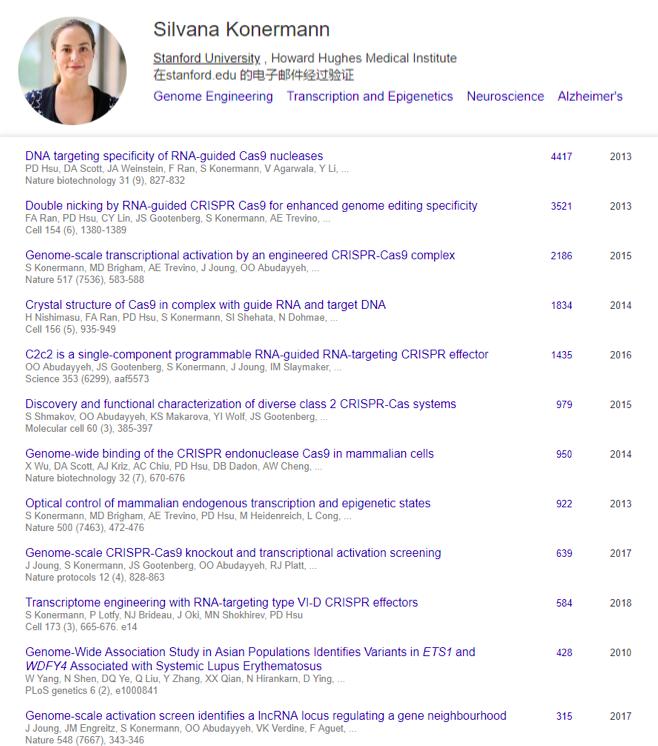 现任斯坦福助理教授的Silvana Konermann在2009年获得顶级名校苏黎世联邦理工学院的生物学学士学位。