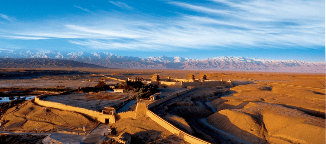 嘉峪关关城位于嘉峪关市区西南6公里处,关城两翼的城墙横穿沙漠戈壁,向北8公里连接黑山悬壁长城,向南7公里连接长城第一墩,是明代万里长城西端主宰,自古为河西第一隘口。