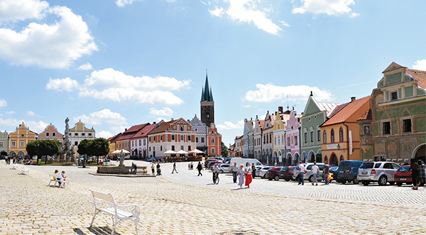 集市广场又名共和广场,也叫赫拉德茨的撒迦利亚广场,没错,就是那位城堡的建造者。围绕广场的建筑普遍建于16世纪末,由多名意大利建筑师参与,每一栋都有独特的山墙设计,贯通的拱廊则形成了和谐统一。1992年,以这座未遭战争与动荡侵袭的特奇古城,整体被列入世界文化遗产。