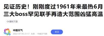 7月5日据中国天气网报道,今年6月全国平均气温为1961年以来同期最高气温。
