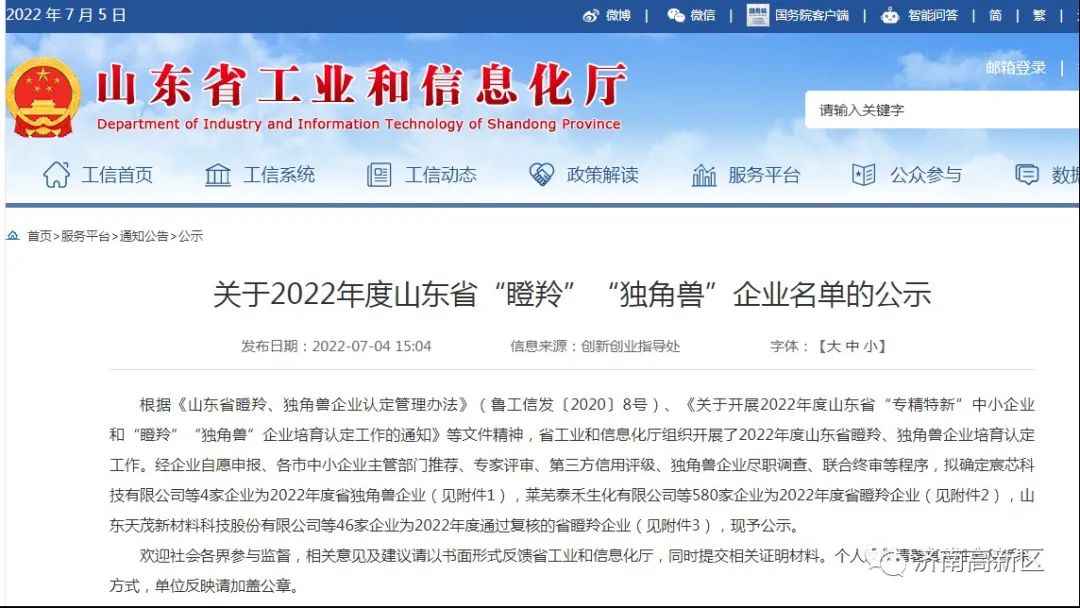 7月4日,山东省2022年度拟认定瞪羚企业名单公示:高新区83家企业入围,占全市入选总数50%,占全省入选总数的15%,入选企业数量再居全市首位,全省开发区首位。