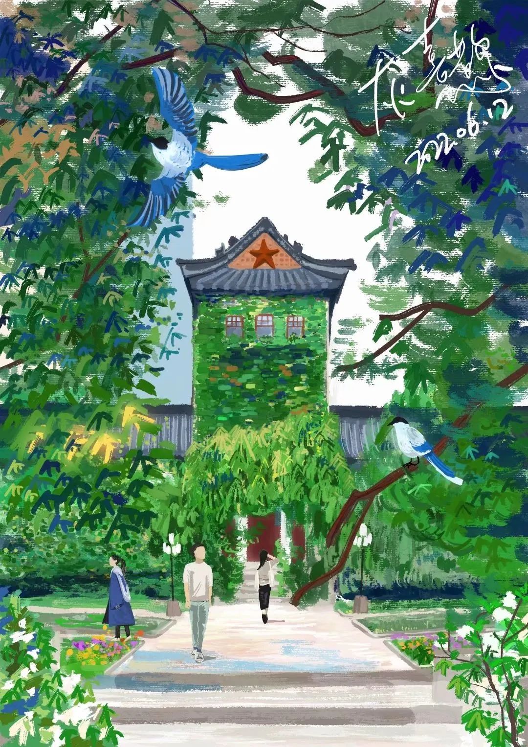 在安静又不失惬意的校园里,夏天披着一身的绿叶儿在暖风里蹦跳着走来了。