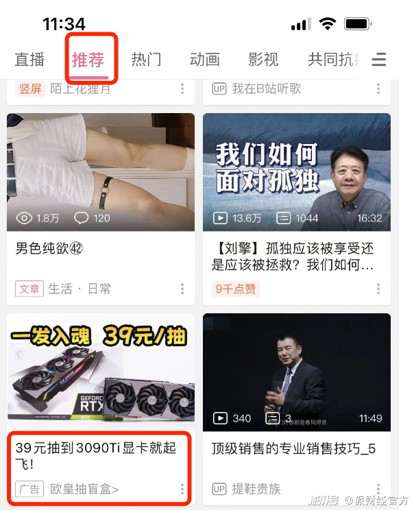 在B站推荐页面,有不少广告直接将用户引导到魔力赏界面。