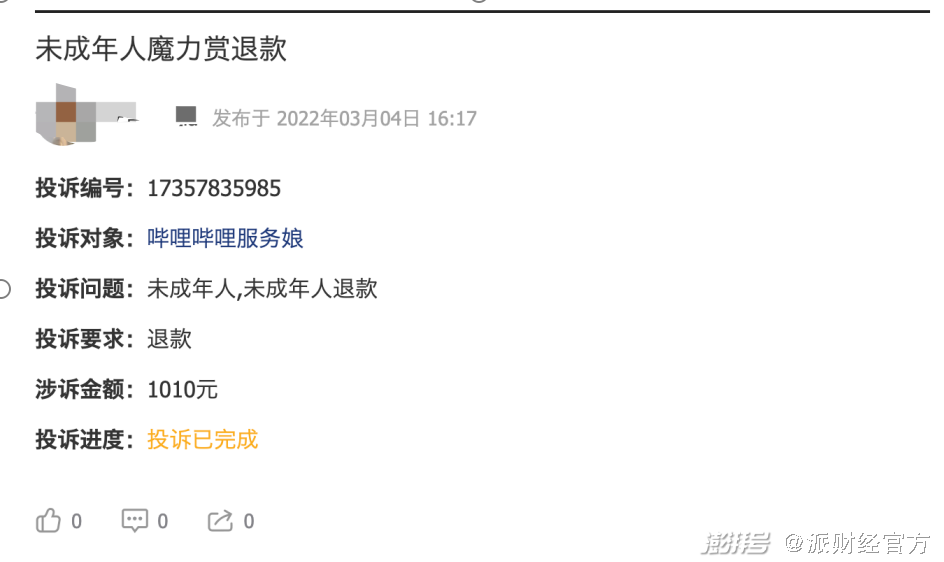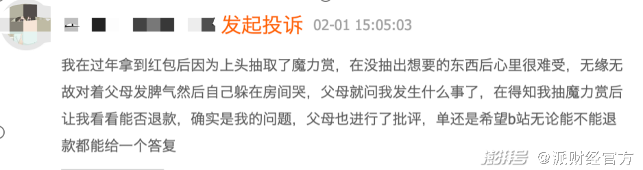 事实证明,在巨大诱惑面前,“青少年模式”形同虚设。派财经观察到在黑猫投诉上,有多位未成年人投诉贴表示,自己用压岁钱一充充了一千多,希望B站退钱。