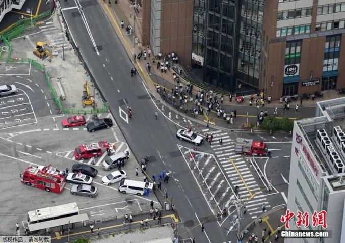 ▲图为日本前首相安倍晋三被枪击后现场航拍图。美驻日大使对安倍中枪表示悲痛