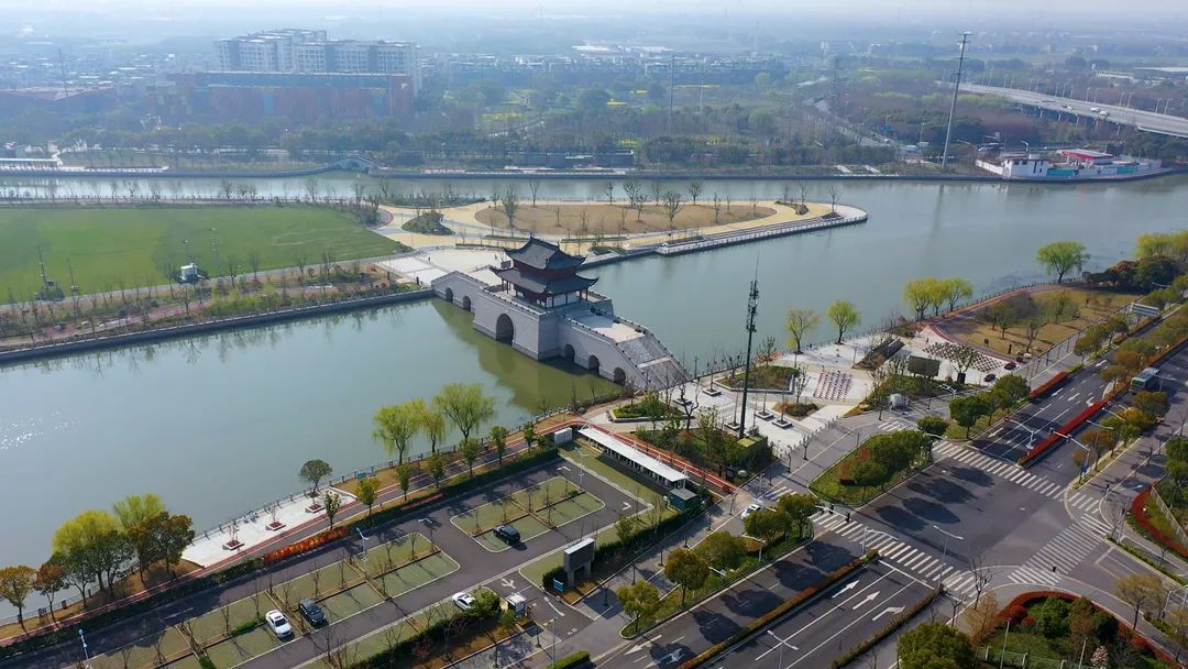 水城门,不仅连接了漕河两岸,更承接了江南水乡古韵和新城现代化气息,让历史和现实在这里交相辉映。记者:陈亮