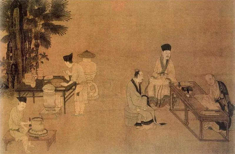 元 赵原《陆羽烹茶图》在具体茶种的品鉴上皎然也有独到见解,他在《顾渚行寄裴方舟》中表达了自己对长兴紫笋茶的青睐: