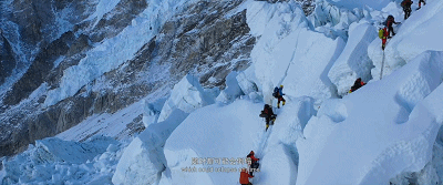 其中,最陡的冰壁,垂直可达90度,要用三把梯子连起来,才能爬完。
