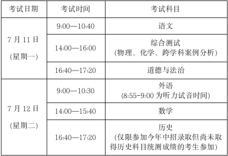 参加语文、数学、外语、综合测试科目考试的考生交卷离场时间不得早于考试结束前30分钟。参加道德与法治、历史科目考试的考生交卷离场时间不得早于考试结束前10分钟。