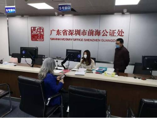 在正式办理公证前,前海公证处对申请人提交的相关信息及证明材料,通过政务信息资源共享的形式依法进行了核实,并与公证申请人进行了充分沟通。通过远程视频,仅用20分钟,就完成了在线身份核实、在线询问、文书核对、线下签名等程序,申请人顺利办理了公证手续,过程高效、便捷。
