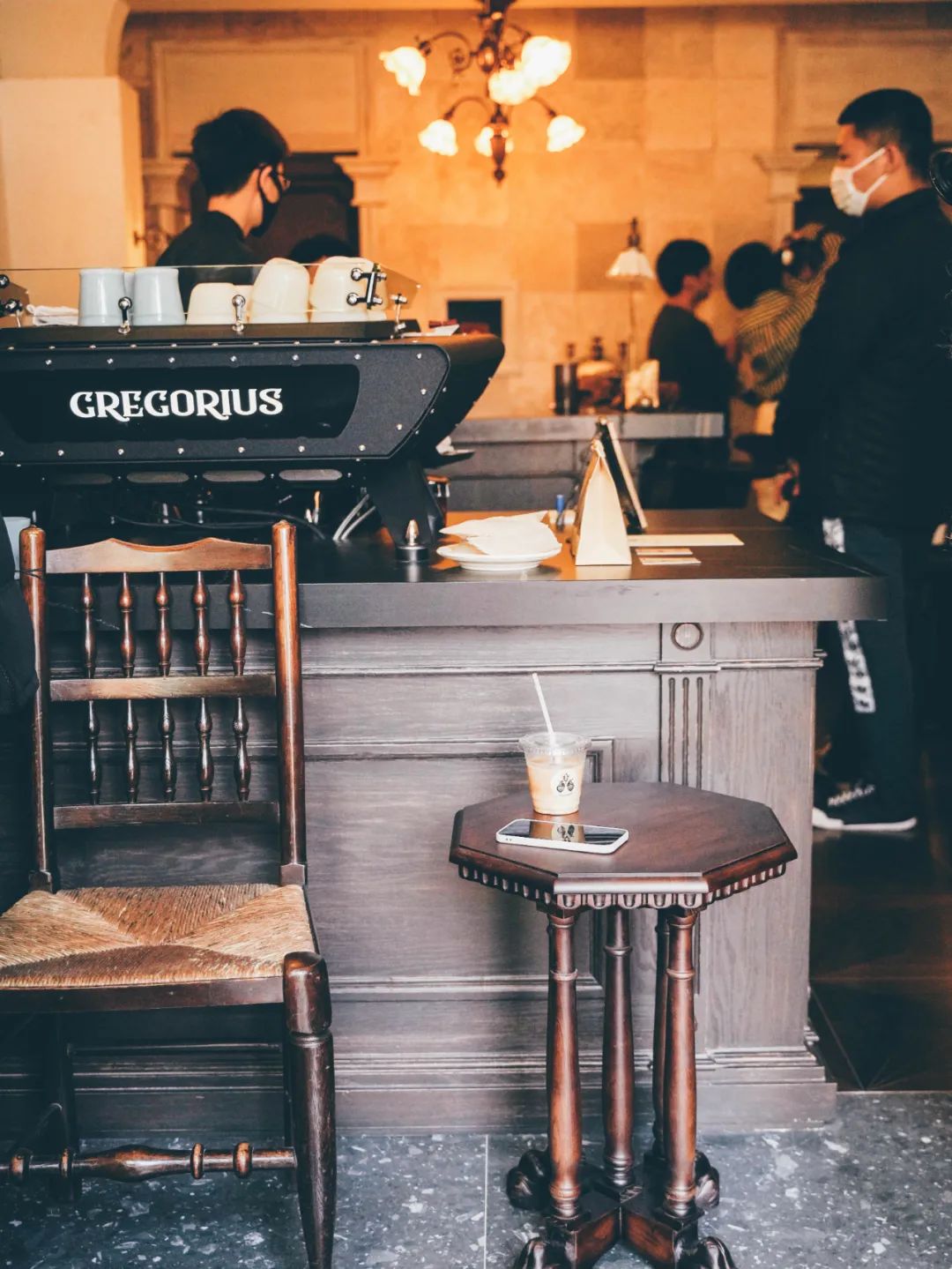 图©️weibo 葛台台走进店铺空间更酷似一间俱乐部,复古墨绿色的百叶窗,闲适整洁的吧台,加上扑面而来的咖啡香气,十分治愈。「草莓脏咖」要尽快喝,每一口的味道和层次都不太一样;喜欢喝点小酒的可以点一杯略带酒精的「老烟枪」,肉桂咖啡再混合威士忌,很上头。如果不喜欢喝咖啡,也有果味汽水和茶饮可以选择。