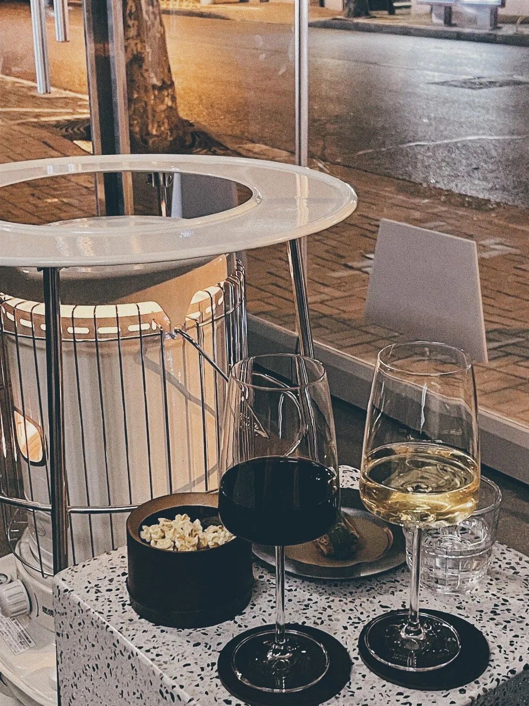 图©️weibo 噗_噜噜噜噜TX 淮海斜对面的氛围感餐吧,找个空闲的下午,在独有情调的 pêcher eatery&wine bar 中闲坐,摇晃起高脚酒杯,抿一口酒,舒服得微微眯起眼,托腮欣赏日落,就这么静静坐着,让愁绪消解在晚霞酿的酒里。