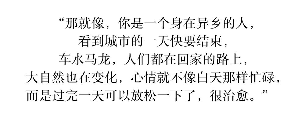 那种感觉就像——“日暮归家”。不止于此。夕阳钟的声音还唤起了他久远的、快要消逝的童年回忆。小时候,他住在大院里。每到下午5点半、6点的时候,大院里也会响起广播。是音乐还是什么? 他已无法记起,但清晰的画面却一直留在心中——大人们骑着自行车,车把上挂着装满了肉、蔬菜的塑料袋,哼哧哼哧往家赶。自行车是老式的,声音特别大,哗啦哗啦地响。孩子们还在小卖部里、沙坑里玩耍,不想归家......