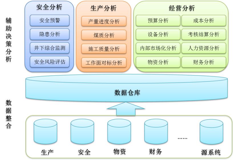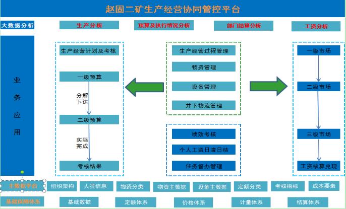 通过建立生产经营协同管控信息系统平台,将企业的预算数据、成本数据、生产数据、绩效数据、销售数据和其他数据在一个平台存储与展示,形成矿井的大数据分析平台。
