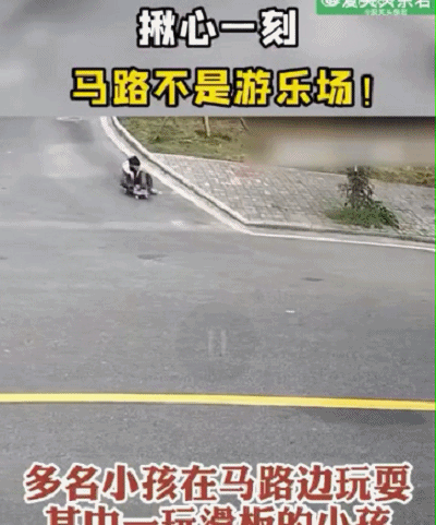 2022年3月2日,湖南娄底,4名男童在马路上玩滑板车,其中一名7岁男童坐着滑板车从坡上飞速滑下来,直接被驶经该路段的一辆小车卷入车底,造成该男童多处严重受伤,所幸没有生命危险。