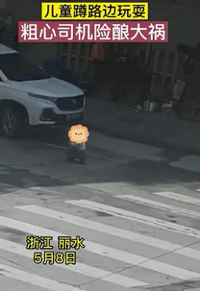2022年5月8日,浙江丽水某街道发生了揪心一幕:一名6岁男孩独自在马路上玩耍,正当他蹲在一辆白色越野车前玩耍时,一名男子上车并直接启动开了出去,完全没有发现车头前有人,男孩被撞倒后迅速卷入车底。好在孩子摔到了车底空隙处,没有被轮胎压到,并无大碍。