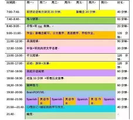 吃饭不能只吃饭,要听音频磨耳朵;两个小时内不止要完成学校作业,更得完成家庭作业;语言怎么能只学一个,最少也要双管齐下。难以想象的是,魔鬼课表能看出“鸡娃家庭等级”,而这也只是“入门级”。