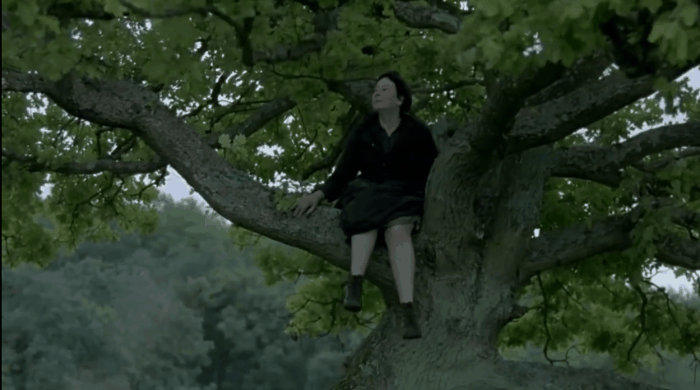 电影中,萨贺芬曾跟乌迪说:先生,你知道吗,当我感到悲伤时,我会去野外,摸摸树,跟花、虫、鸟说说话,一切就会好的。而在电影的最后,萨贺芬穿着朴素长衫,爬上长满青草的山坡上,在葱郁的大树旁坐下,微风拂过,一如她最开始单纯的爬上树,享受自然带来的宁静和美好。