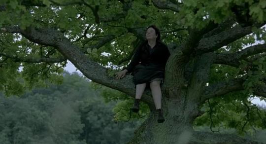 电影中有一幕极是动人:萨贺芬赤脚爬上树,坐在树干上像孩子般晃动着双脚,微风拂过,安宁而祥和。