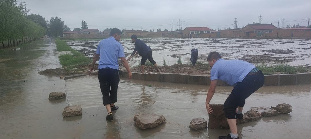 五分钟后,民警到达现场,发现村民家中院落水位聚积较深,且雨水还在不断往院内倒流,民警挽起裤腿立即组织3家居民利用水盆、水桶等工具进行紧急排水,并带领2名村民在院墙外侧修筑拦水带和导流渠,将雨水引流至家外对面的田里。经过40多分钟的奋战,周边3家居民院内的积水已基本褪去,看到村民脸上紧皱的眉头终于舒展开来,民警也顾不得擦掉脸上的雨水和泥巴,又紧急赶往下一个警情地点开展救援工作。
