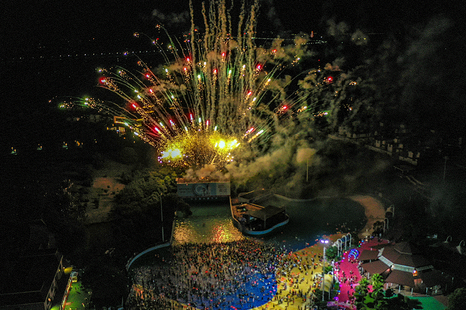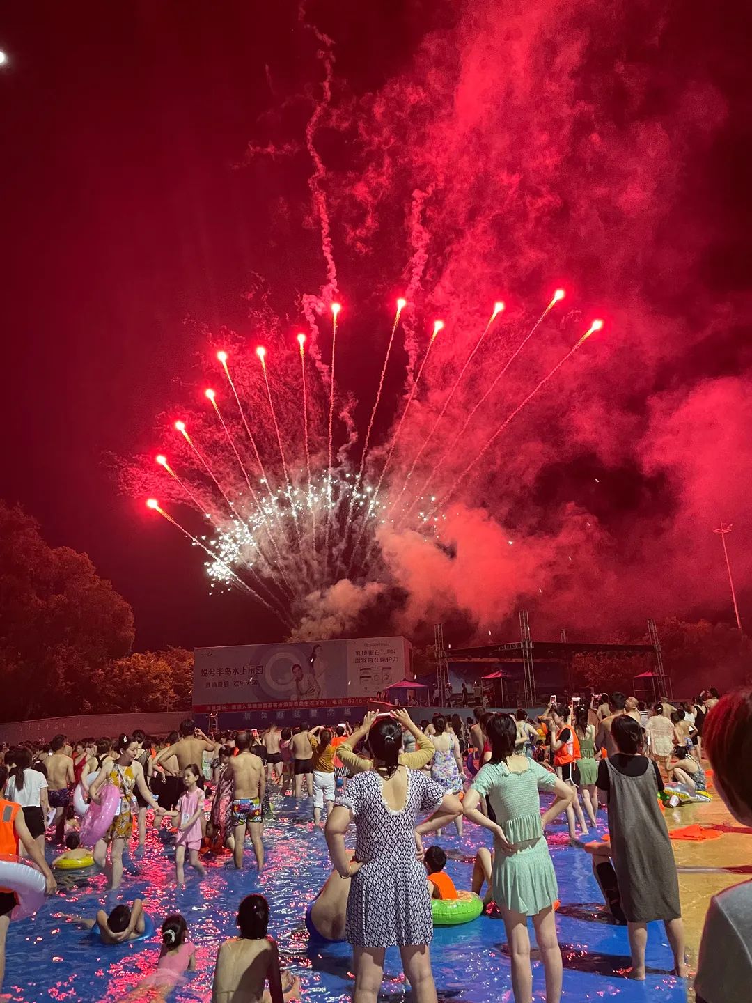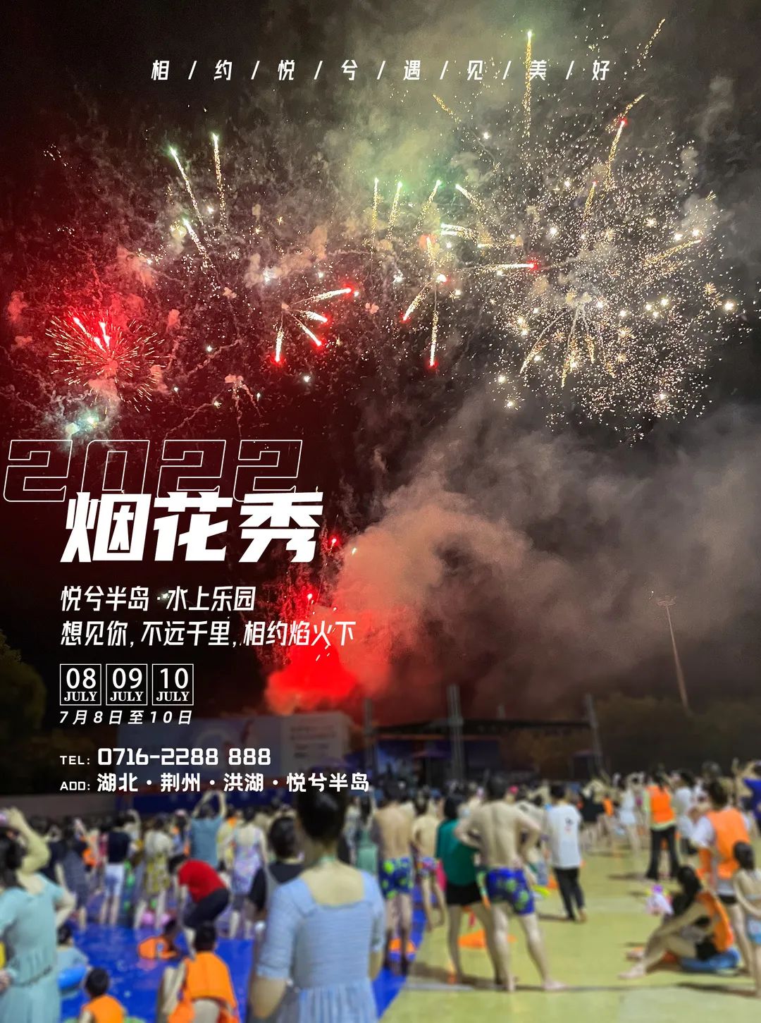 相约悦兮 遇见美好燃燃燃,悦兮半岛水上乐园作为烟花秀的观赏地,以绚烂烟花、飞人特色演艺、缤纷活动、柴火夜市等,吸引了数万人夏夜狂欢。