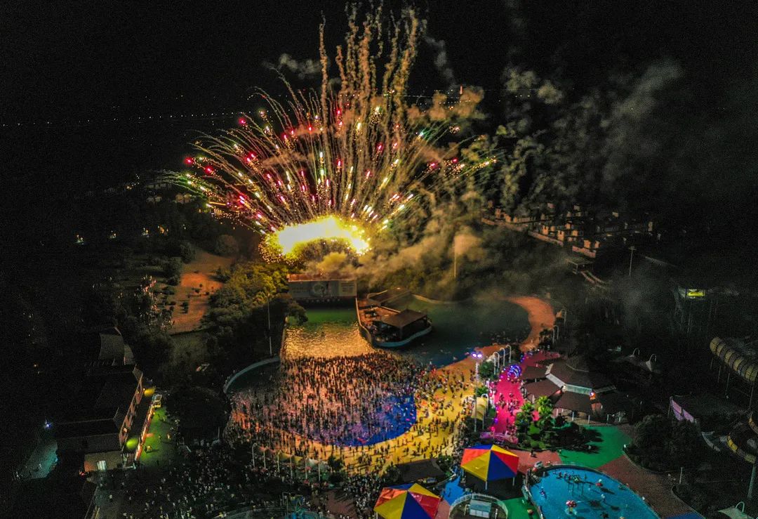 【烟花狂欢夜】夜幕降临,水上乐园夜场爆满,齐聚水上,观赏绚烂烟花秀。