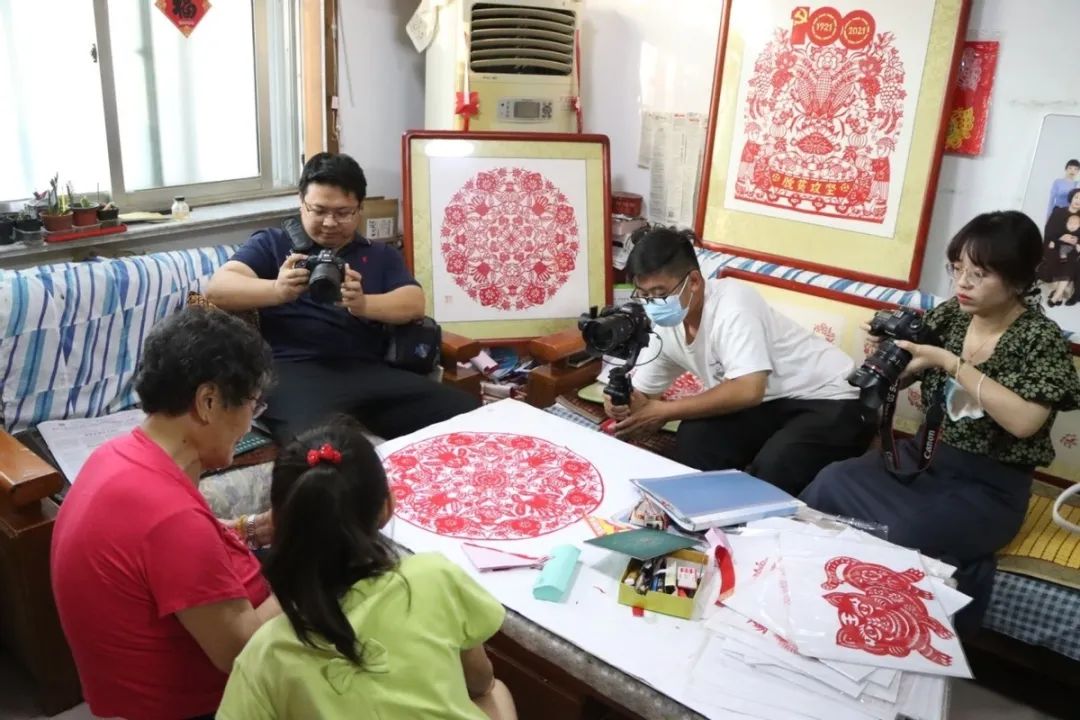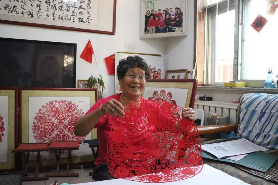 滨州市滨城区的传统美术主要是剪纸,广泛分布于黄河、徒骇河流域的乡村集镇。据《滨州志•风俗篇》记载:“夕贴春联彩胜,易门神桃符。”由此可见剪纸艺术在这里与民众生息相伴已有长久的历史。王德荣老人是滨州剪纸的代表人物之一,这位集剪纸、刺绣、布艺等手工技艺于一身民间艺术家,是国家级非物质文化遗产代表性项目(滨州民间剪纸)代表性传承人。7月6日,百年非遗看滨州网络主题活动采访团来到王德荣老人家中,在与老人的交流中,领略滨州剪纸这一非遗项目的艺术魅力。