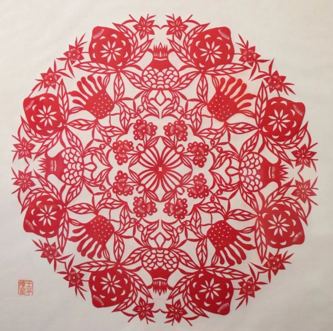 滨州剪纸历史悠久,题材广泛,内容丰富,形式多样,构图饱满,轮廓粗犷,装饰简洁,色彩鲜艳、造型夸张,整体感强,风格粗犷古拙,浑厚率真。民间剪纸的制作工具主要是剪刀和纸张,也有刀、剪并用的。在滨州说起剪纸这门艺术,王德荣的剪纸作品算得上首屈一指了。她从小喜欢画图、剪纸,做女工技术也是数一数二的。王德荣生于1938年,虽然已是80多岁高龄,但是在家还是闲不住,一把剪刀一张纸是王德荣身边的常备物品。随手想起什么就要剪下来。