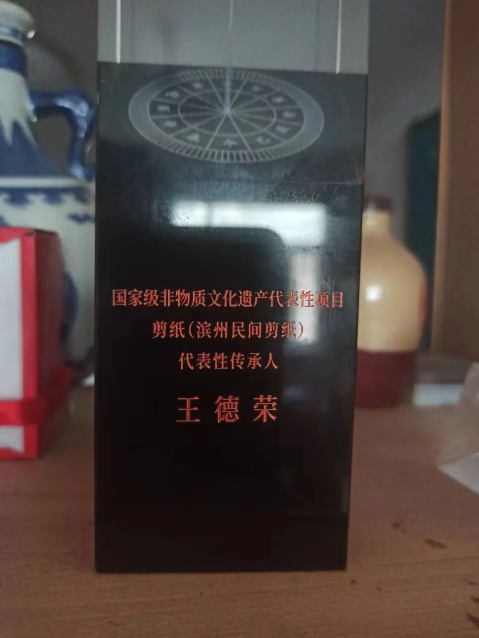 在1992年,王德荣的刺绣作品入选《中国山东滨州民间手艺展》并在香港展出,并被画廊永久收藏。之后,王德荣的《丰收图》、《福寿安康》、《喜鹊登梅》、《墙头记》……12幅剪纸作品被作为联合国教科文卫组织将滨州剪纸认定为人类非物质文化遗产的代表作,剪纸作品《墙头记》被非遗文化保护中心收藏并长期陈列展示,部分作品被香港画廊等永久收藏,更有作品远销韩国、日本,被众多国际友人珍藏。王德荣的大儿媳是滨州市吕剧团吕剧名家孔令兰,受王德荣的影响也是剪纸爱好者。创作了很多吕剧人物的剪纸作品,很有特色。除此之外家里儿辈孙辈们很多也能写会画,剪纸作品也很优秀。孙女王倩7岁就参加展览,12岁就凭剪纸《鱼乐图》拿了全国少儿书法美术大展的金奖;外孙女张乐带着同学以“滨州剪纸”为课题做社会调研,跟着外婆学剪纸,并以学校特色地点为蓝本创作剪纸作品,回校后集成明信片出版,受到学校师生一致好评。