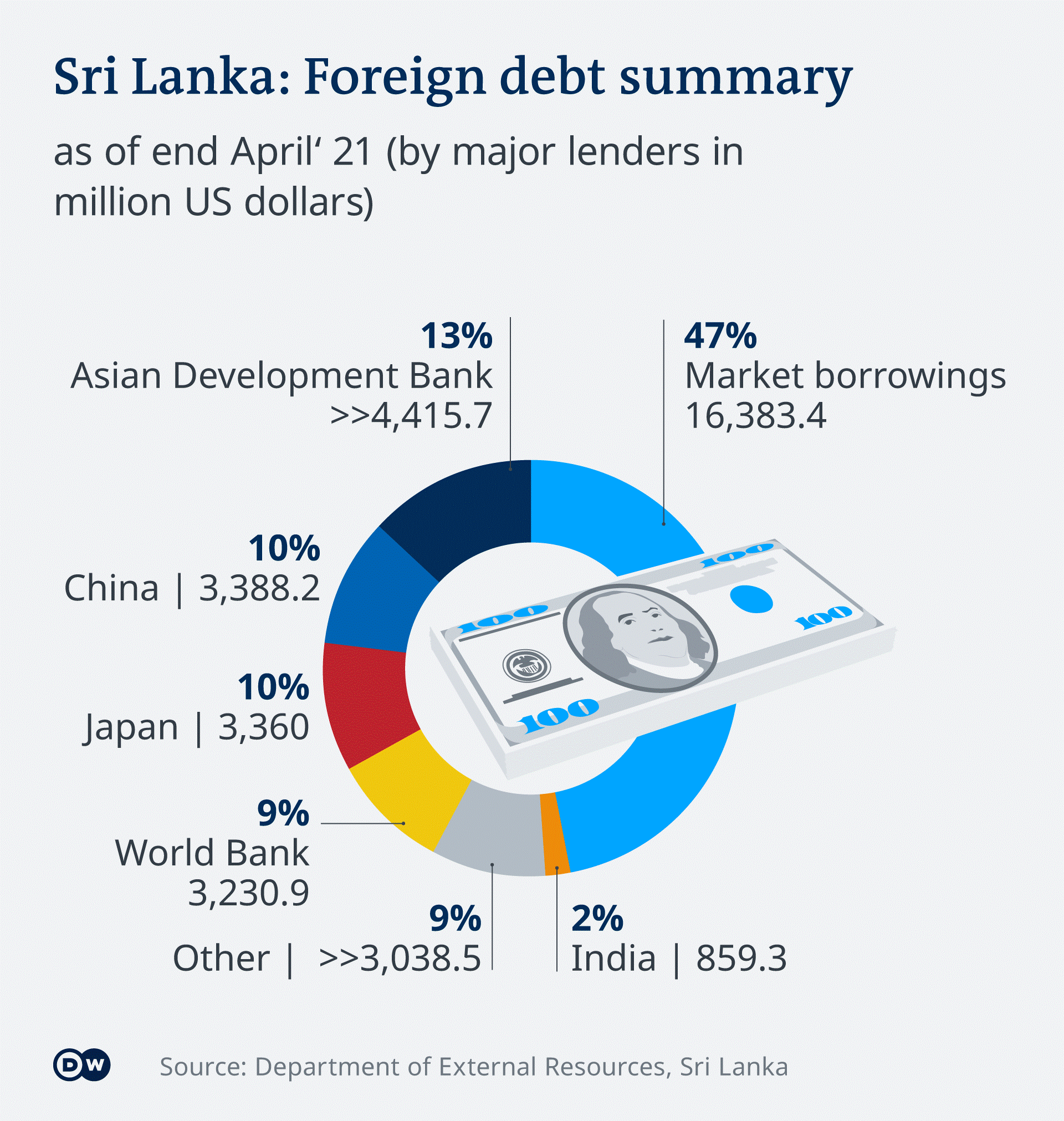 斯里兰卡外债来源构成,数据来源:Sri Lanka Department of External Resources/Deutsche Welle