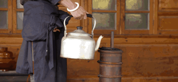用木槌反复捶捣茶叶和香料之后,加水搅拌*《沸腾吧火锅》第二季