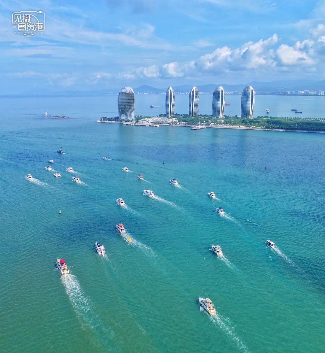 7月8日上午,在三亚凤凰岛海域,一艘艘游艇出港。见习记者 王程龙 摄