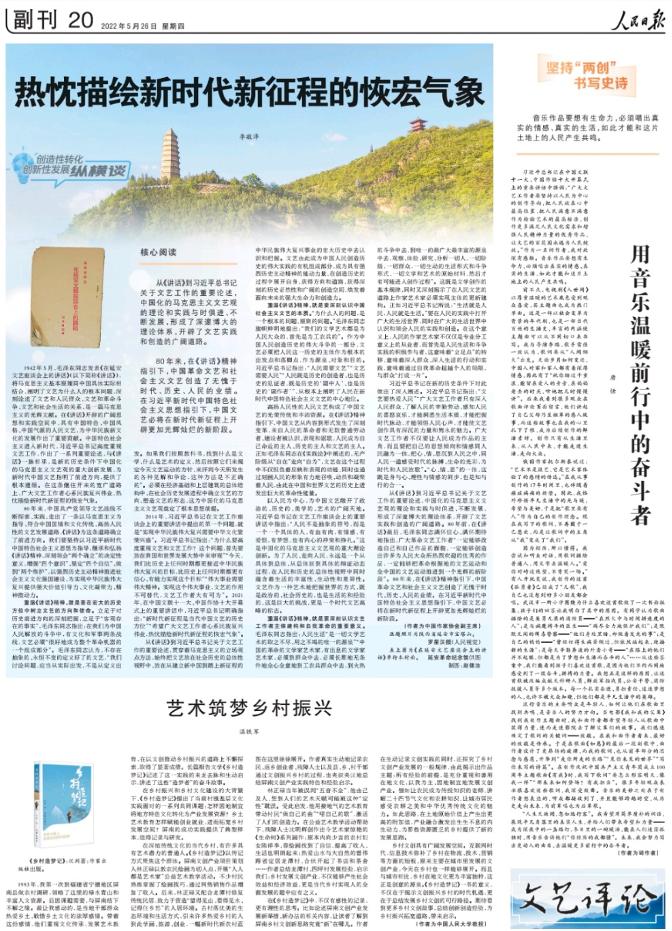 5月26日,一篇题为《用音乐温暖前行中的奋斗者》署名唐恬的文章,在《人民日报》副刊“坚持‘两创’书写史诗”专栏发表。
