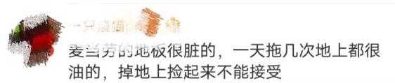 有网友称“掉地上捡起来还放回去,她咋不自己吃下去”,“麦当劳的地板很脏的,一天拖几次地上都很油的,掉地上捡起来不能接受”。