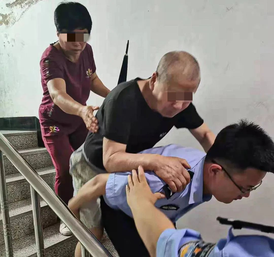 接到报警后,派出所值班民辅警迅速赶到现场,经了解得知,原来当天风大雨急,老人因着急避雨,便走进了一个单元门,以为到了自己居住的地方,一直走到6楼,才发现自己走错了。老人出门时未带手机,且患有疾病,行动不便,便向附近住户求助。