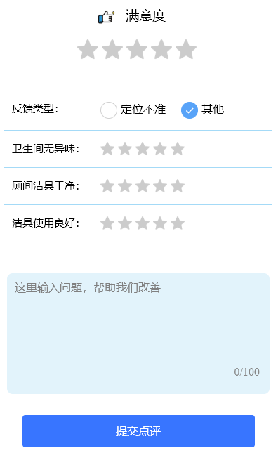 如发现公厕基本信息、位置、状态等与小程序显示不同,可进行错误信息的反馈;