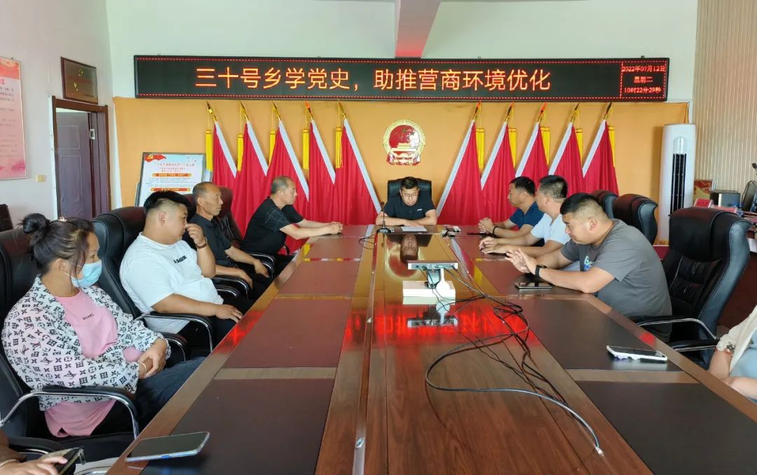 为迎接党的二十大胜利召开,进一步优化营商环境,连日来,三十号乡坚持把党史学习与优化营商环境两者有机结合起来,做到党旗领航、同频共振、互促同进,实现党史学习教育深化、营商环境持续优化的“双赢”局面。
